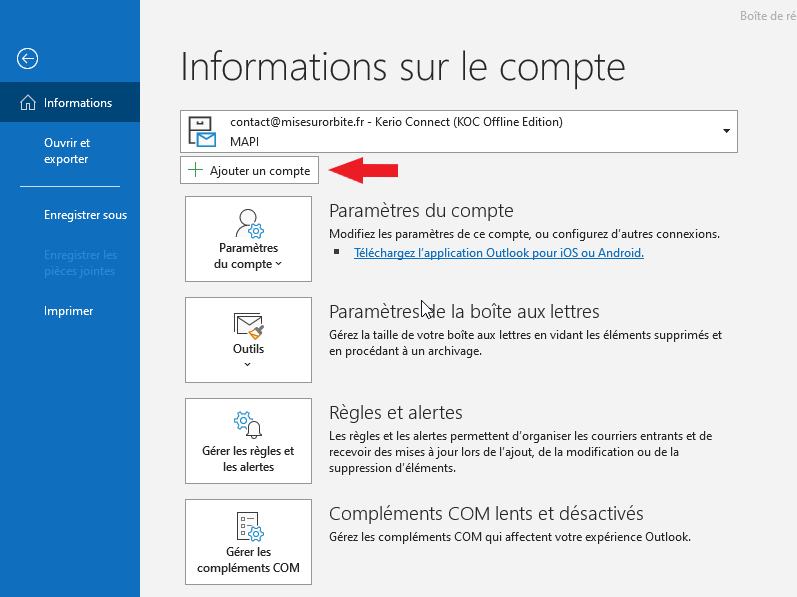 Cliquez sur le menu Fichier puis sur Ajouter un compte :