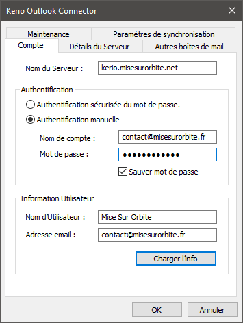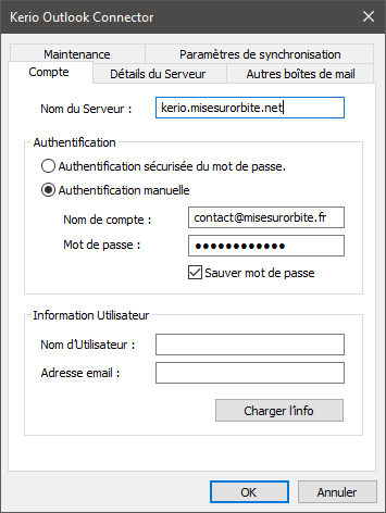 Mettez dans le champ Nom du serveur : kerio.misesurorbite.net ou le nom de votre serveur Kerio Connect
