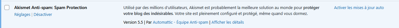 Et enfin activer les mises à jour automatique sur l’extension Akismet
