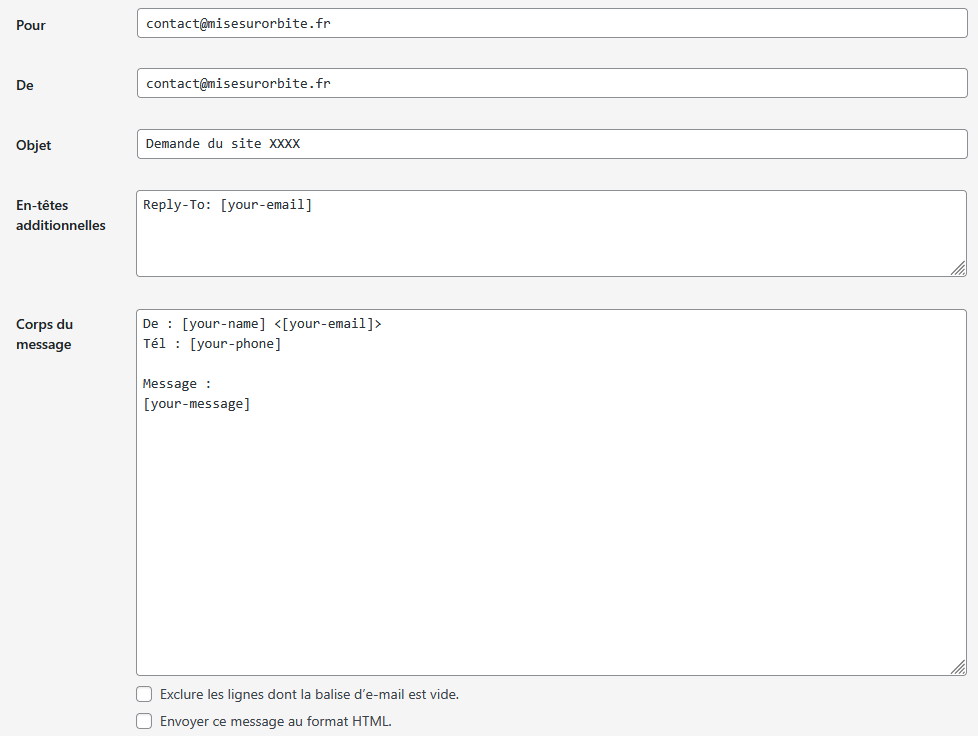 La partie importante c’est dans les en-têtes additionnelles ou l’adresse de réponse est celle qui sera rentrée par votre correspondant.
