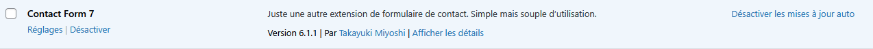 Et enfin activer les mises à jour automatique sur l’extension Contact Form 7